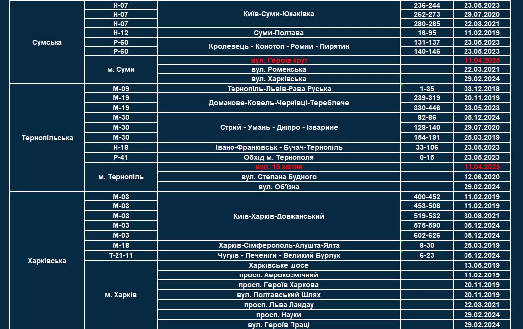 У Запорізькій, Миколаївській, Сумській, Харківській та Херсонській областях TruCAM застосовують на окремих безпечних ділянках.