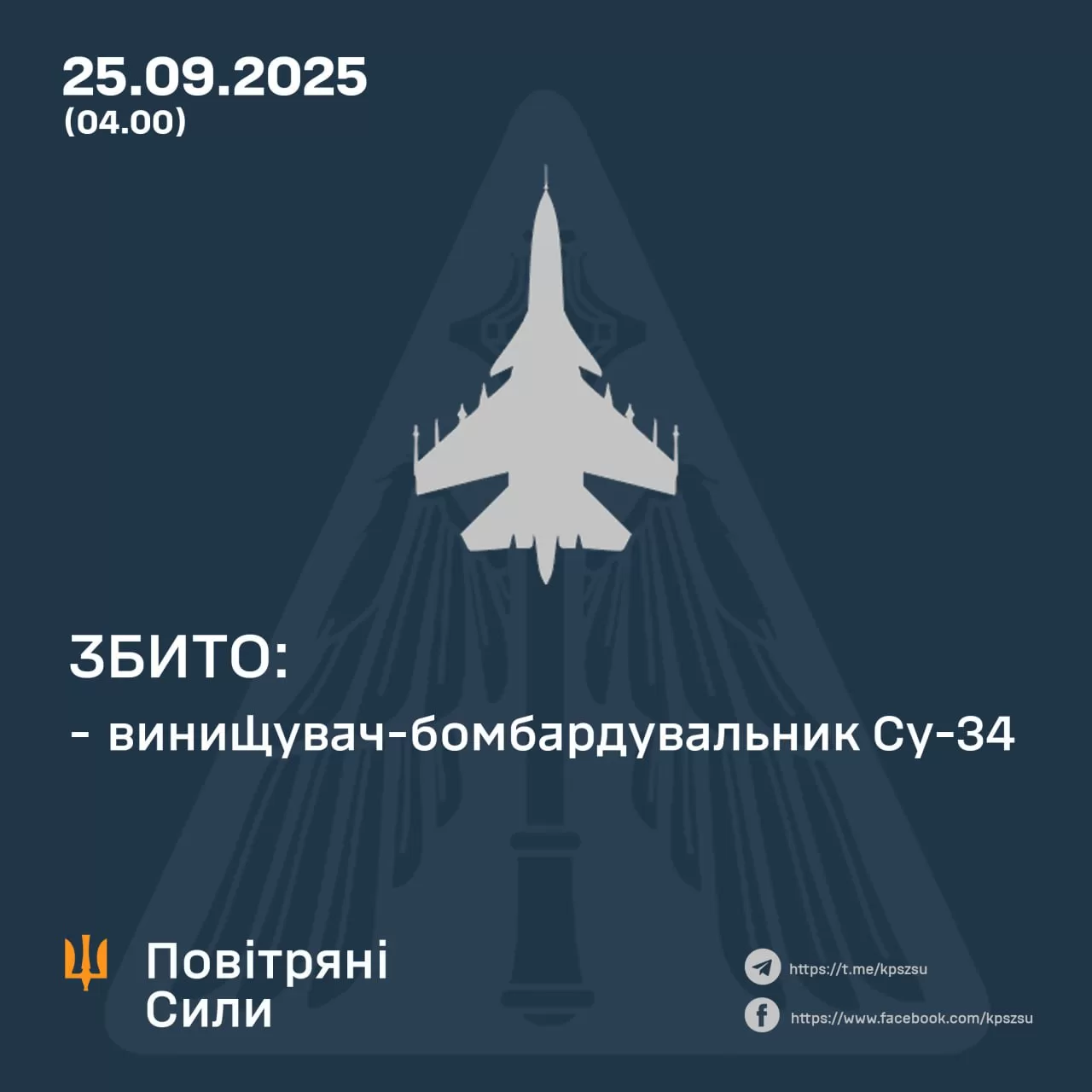 Сьогодні, 25 вересня близько 4:00, на Запорізькому напрямку збито російський літак Су-34, який бомбардував Запоріжжя.