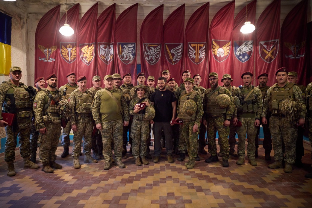 Президент України Володимир Зеленський зустрівся з бійцями, які беруть участь у відображенні російської агресії у складі оперативно-стратегічного угрупування військ “Таврія” та вручив їм нагороди.