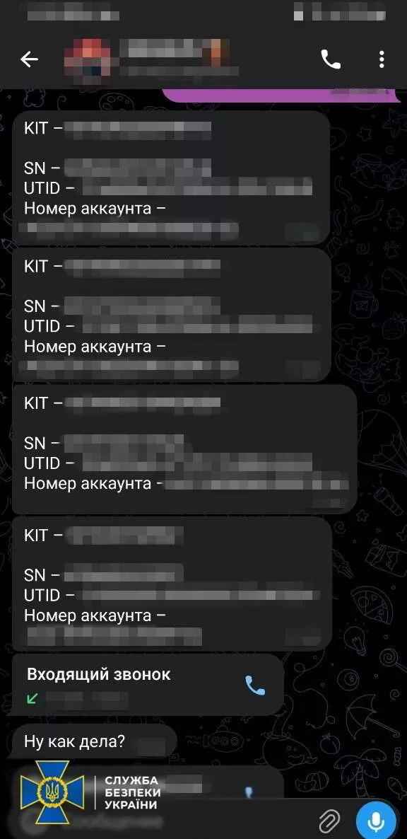 Во время обысков у задержанных изъяты мобильные телефоны с доказательствами работы на врага. Задокументирована переписка с российскими кураторами, инструкции по механизму легализации оборудования, а также согласование способов получения вознаграждения.