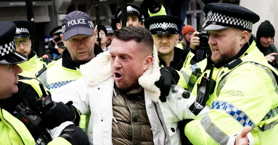 Полиция арестовала ультраправого активиста Томми Робинсона в начале воскресного марша после того, как он отказался покинуть территорию по требованию полицейских.