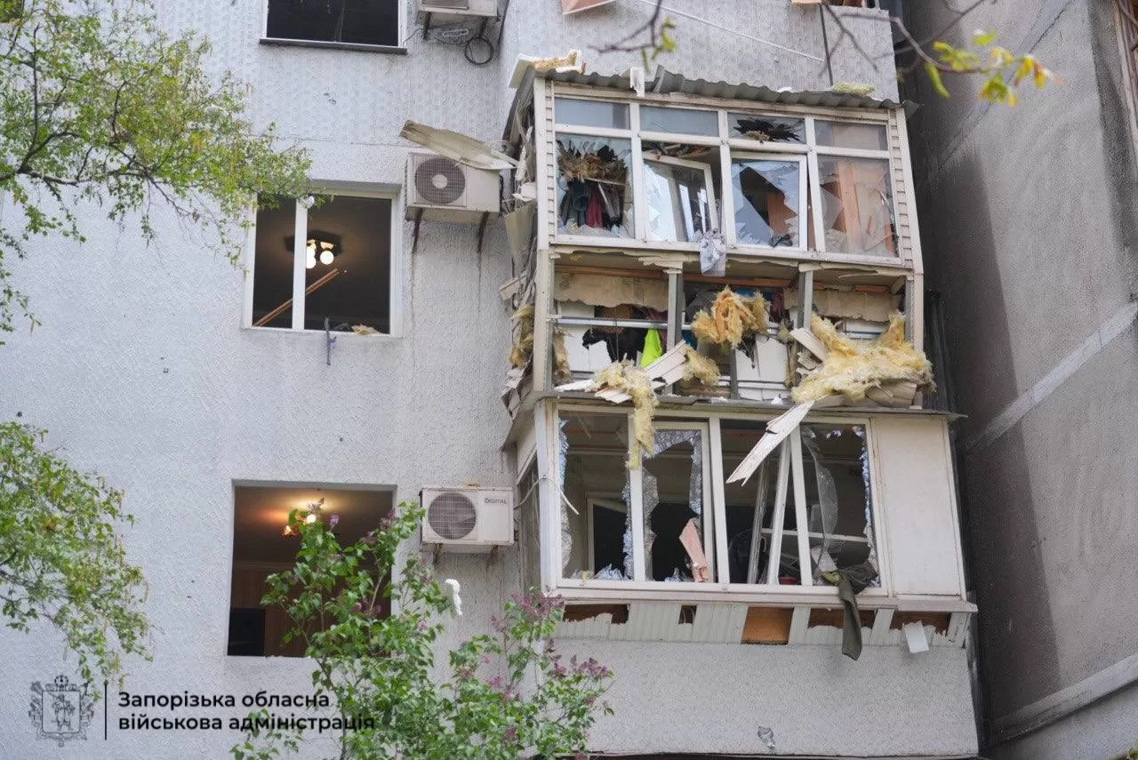 В результате вражеской атаки в одном из районов Запорожья возник пожар. Серьезно повреждена многоэтажка, загорелся легковой автомобиль.