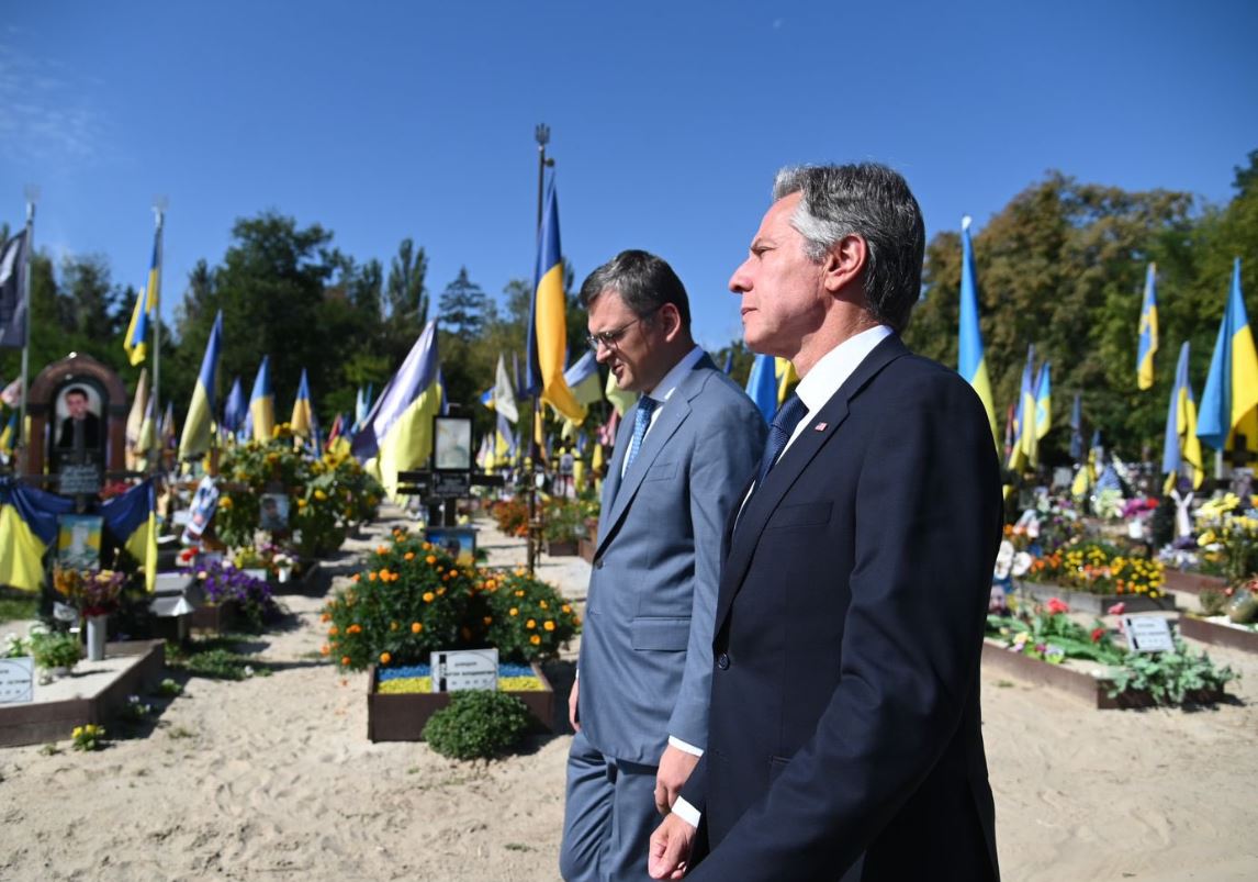 “Я приветствовал Энтони Блинкена в Украине. Госсекретарь стал первым коллегой, который начал свой день в Киеве с чествования памяти наших павших героев на Берковецком кладбище. Это знак уважения ко всем украинским воинам, отдавшим свою жизнь за нашу свободу и право на жизнь”, — написал Кулеба в соцсети Х.
