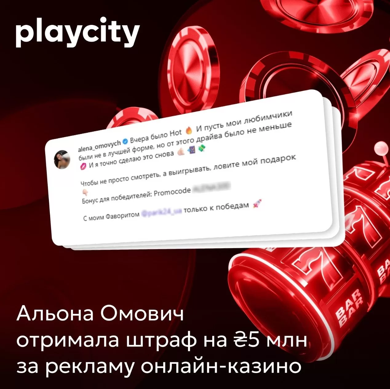Блогерку Алёну Омович оштрафовали на более 5 млн грн за рекламу нелегального казино. Её личность установили при участии Бюро экономической безопасности.