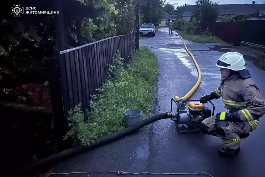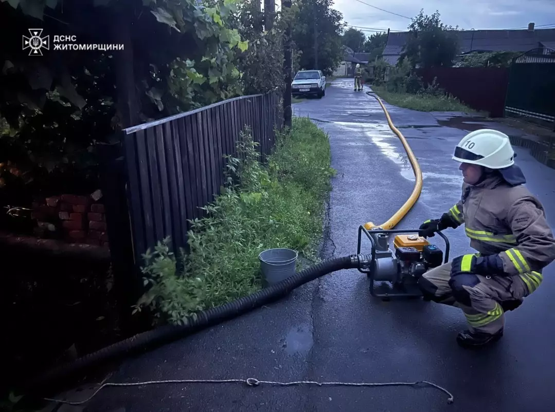В частности, сразу в нескольких домах в городе Звягель проводились работы по ликвидации подтоплений: вода попала в жилые комнаты, а также в подвалы и дворы частных домов. За сутки бойцы ГСЧС откачали 490 куб. м воды.
