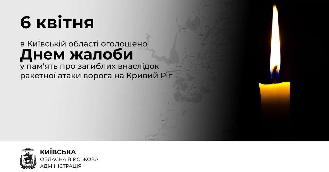 В Киевской области 6 апреля объявлен День траура по погибшим в результате ракетного удара российских войск по Кривому Рогу 4 апреля, в результате которого погибли 18 человек. Об этом сообщили в Киевской ОГА.