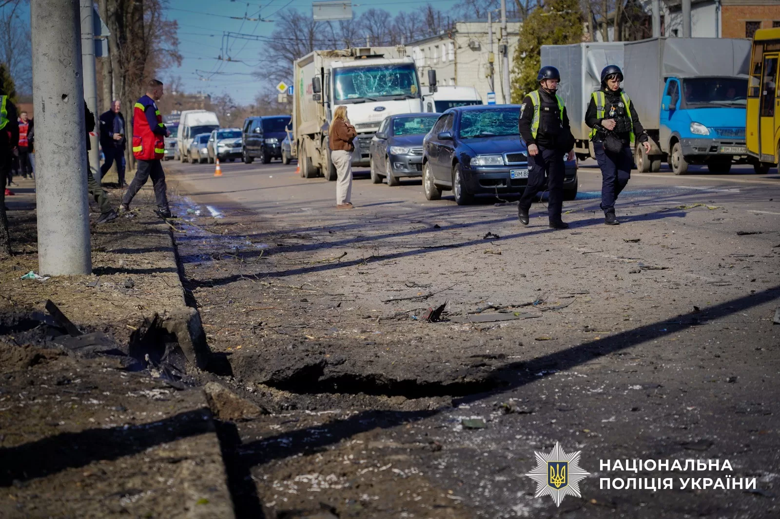 На местах попаданий продолжают работать правоохранители и взрывотехники, которые фиксируют последствия обстрелов и проводят осмотры территорий.
