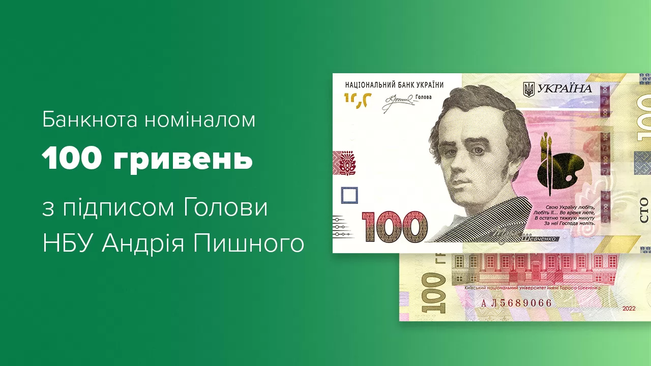 Национальный банк с 19 декабря 2022 выпускает в обращение банкноты номиналом 100 гривен образца 2014 — с подписью председателя Национального банка Украины Андрея Пышного и отражением на них года выпуска.