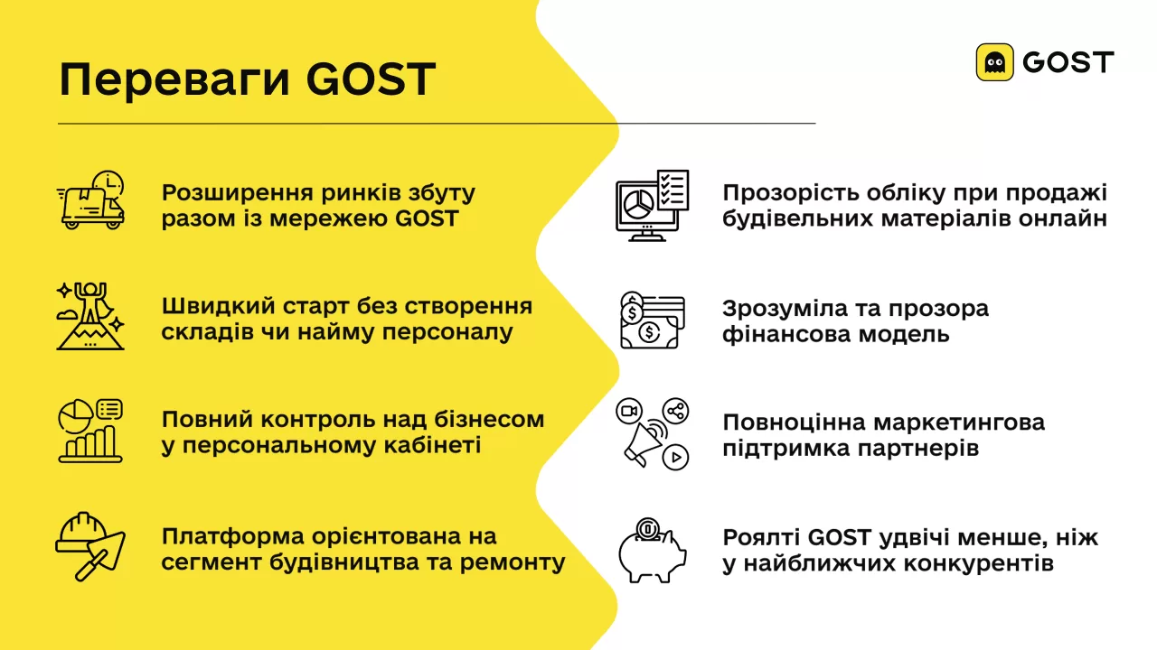 26 ноября в Украине официально стартовал GOST — маркетплейс нового поколения, созданный специально для сегмента строительных материалов. Это первая площадка, где собраны исключительно стройматериалы и сопутствующие товары, а сама платформа работает по модели прямого взаимодействия между производителями и покупателями без лишних посредников.