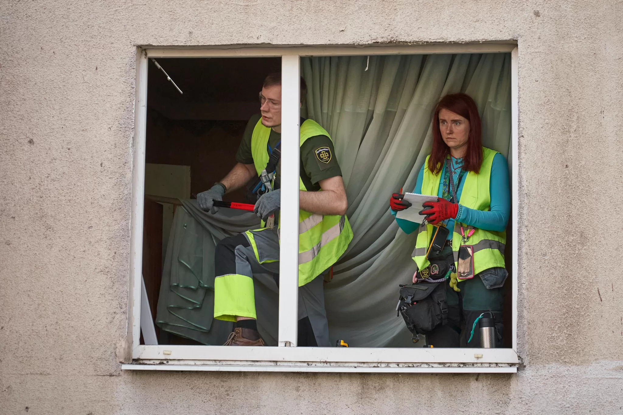 Сейчас дыры в стенах и оконные проемы снова и снова закрывают OSB-плитами — иногда по несколько раз на одном и том же месте из-за повторных ударов ракет и дронов. Терехов подчеркнул: зима уже близко, а холод не прощает.