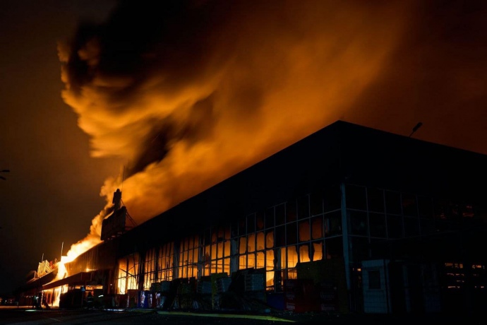В Херсоне в результате обстрела россиянами города в ночь на 3 февраля дотла сгорел торговый центр «Эпицентр».