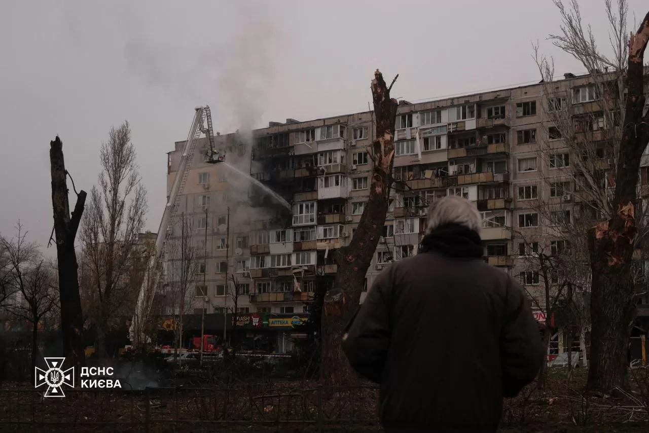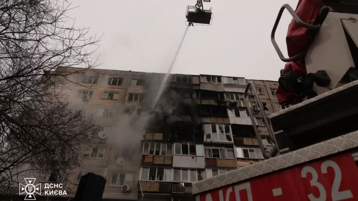 ▪️Дарницкий район: в результате падения ракеты во дворе 9-этажного дома произошел пожар на 5-7 этажах. 1 человек погиб, 6 человек пострадали, 1 из них госпитализирован. Пожар ликвидирован.