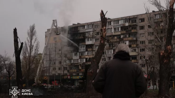 ▪️Днепровский район: попадание в 10-этажный жилой дом привело к разрушению 6-7 этажей. Пожар ликвидирован. С 7 этажа спасены 3 человека, среди них маломобильное лицо. Продолжается разбор конструкций.