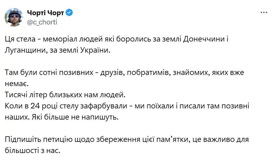 Идею сохранения легендарной стелы поддержали военные в сети X.