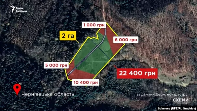 На этой земле, по данным расследования, расположен комплекс отдыха с двумя коттеджами, бассейном, чаном и панорамной сауной; стоимость аренды одного коттеджа на 10 человек — 10 тыс. грн в сутки. Эксперты оценили стоимость двух коттеджей примерно в 12 млн грн.