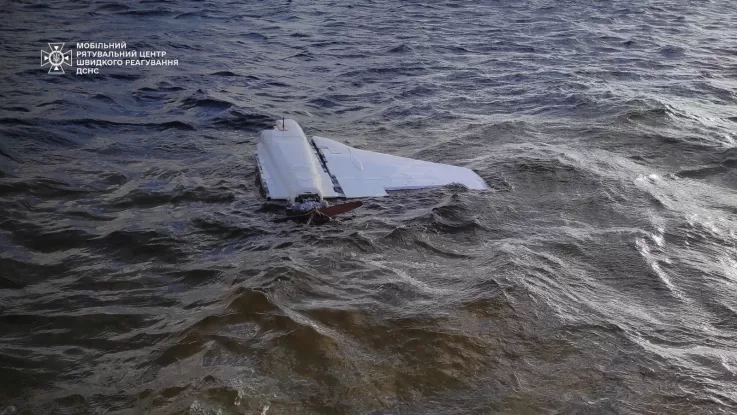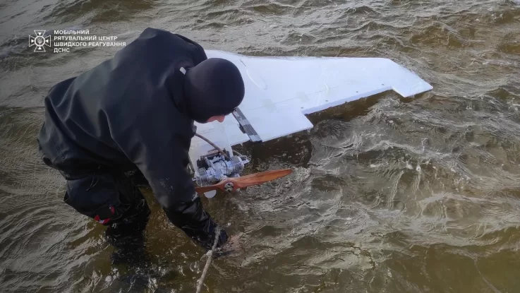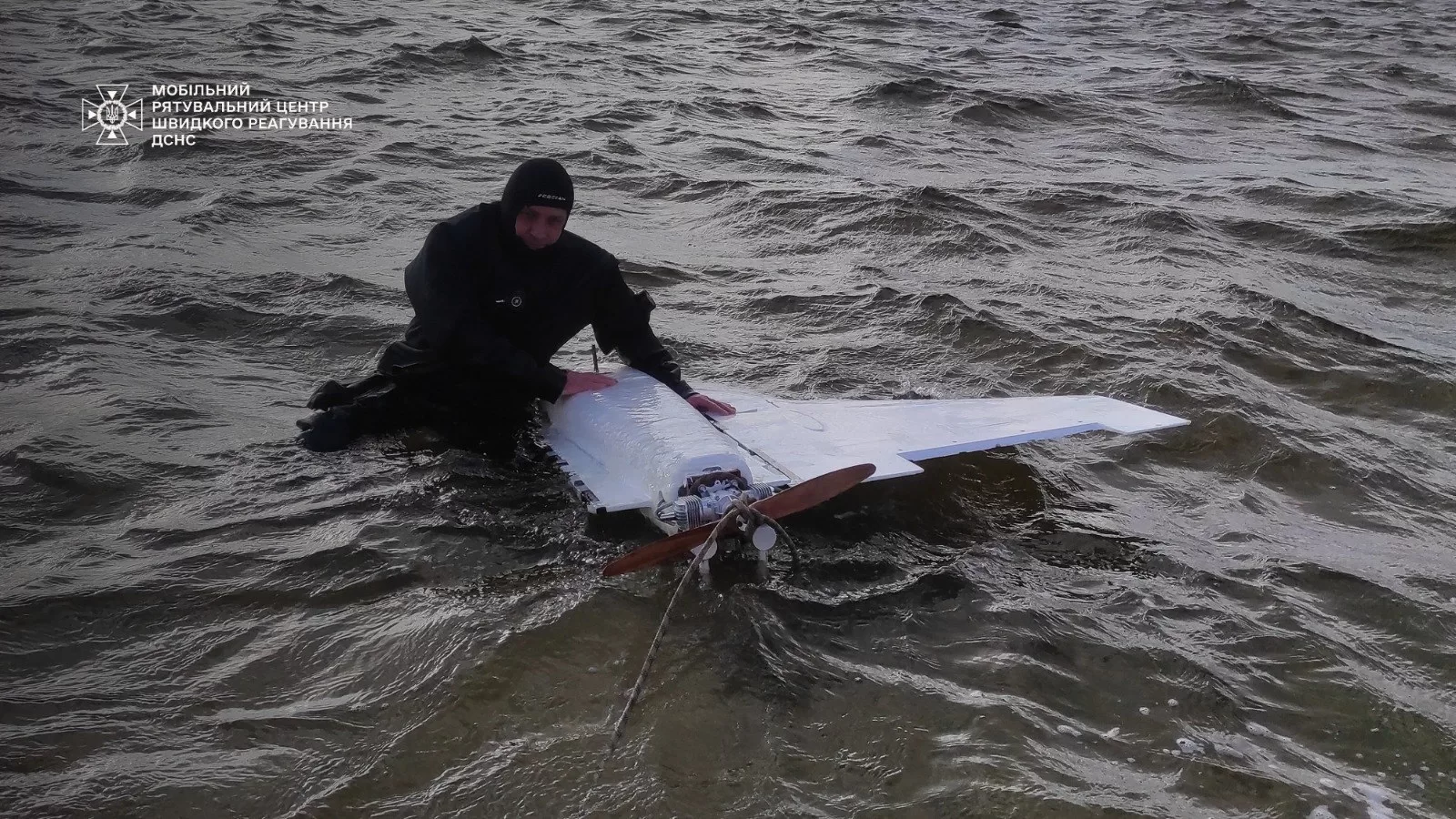 «Водолазы-саперы Мобильного спасательного центра быстрого реагирования ГСЧС Украины обследовали акваторию и на расстоянии 60 м. от берега обнаружили обломки вражеского беспилотного летательного аппарата», — говорится в сообщении.