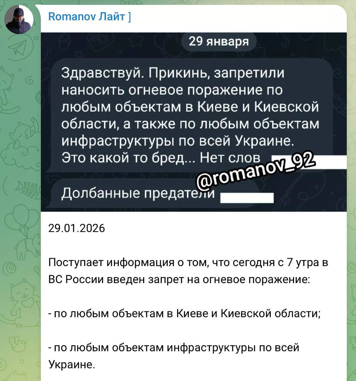 Сегодня, 29 января, в ряде российских Telegram-каналов появилась информация о том, что российские военн