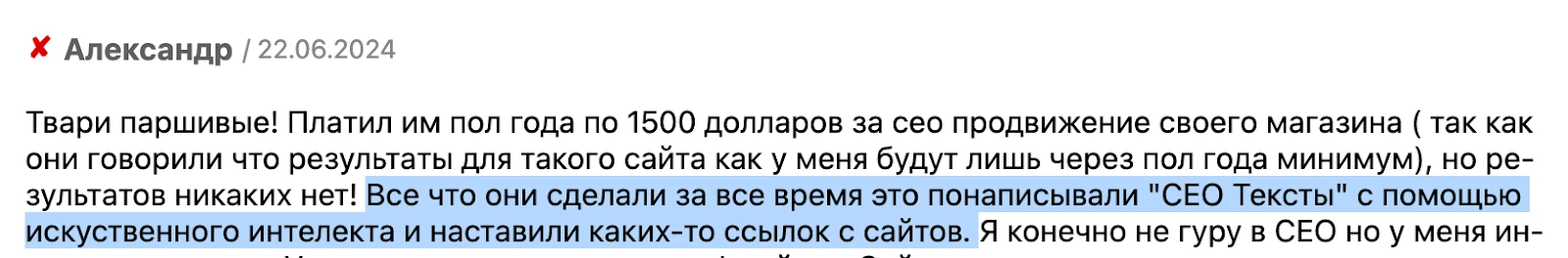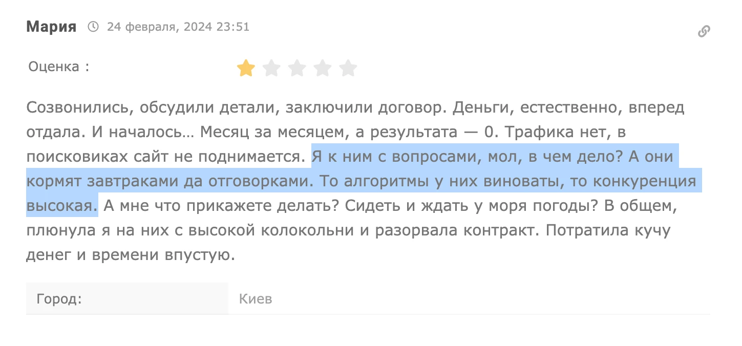 В-третьих, некоторые клиенты жаловались, что нет никакого отчёта — мол, вообще непонятно, чем агентство занимается и что это даёт.