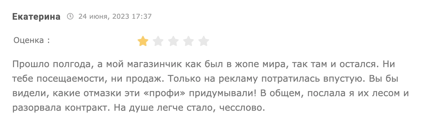 Во-вторых, в отзывах встретил информацию, что агентство работает по одному шаблону для всех клиентов и вообще «ничего не делает».