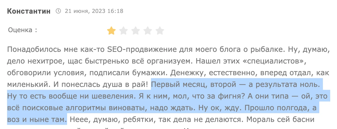 Ещё один момент, который меня смутил в отзывах — отговорки менеджера на вопрос «Почему нет результата?».