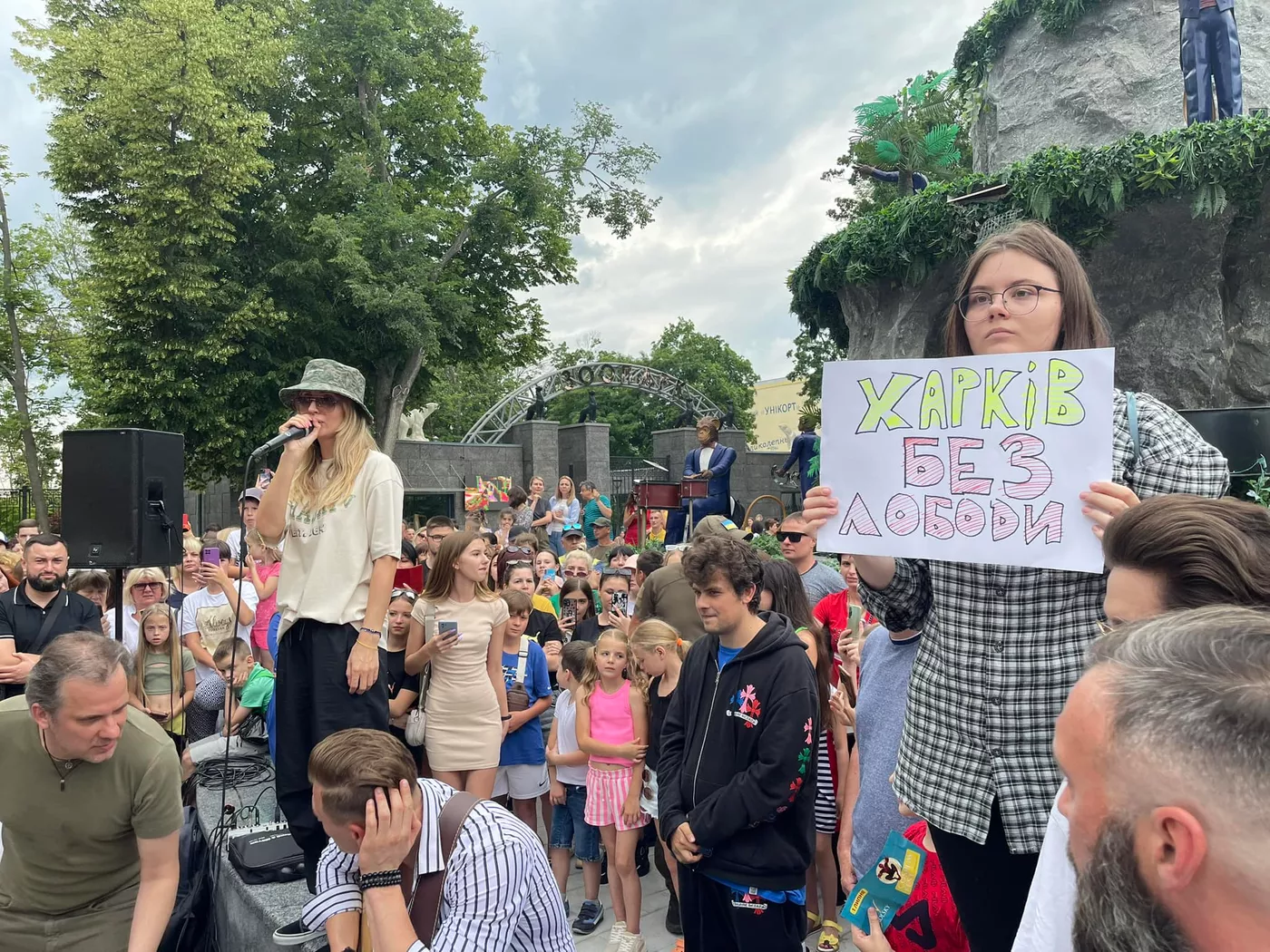 Импровизированный концерт Лободы проходил днем 25 июня у входа в харьковский зоопарк в Саду Шевченко.