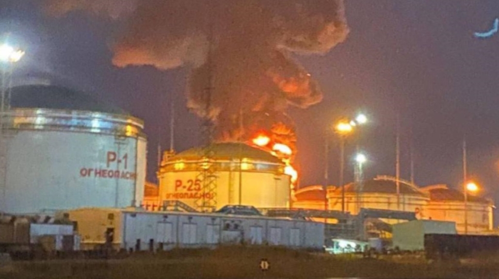 В поселке Волна Краснодарского края РФ, недалеко от Крымского моста, пылает нефтебаза.