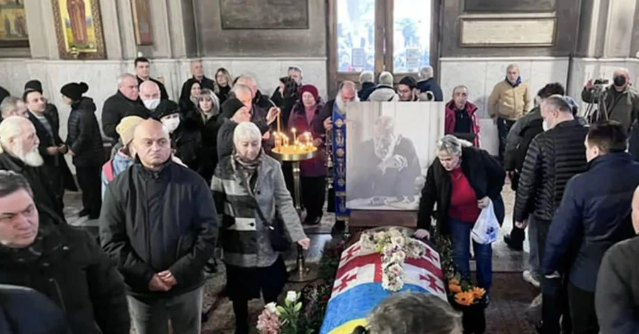 Гроб с телом актера выносили из здания Госфилармонии. Проститься с артистом пришли тысячи людей. Автомобильное движение в центре столицы Грузии из-за похоронной процессии было перекрыто.