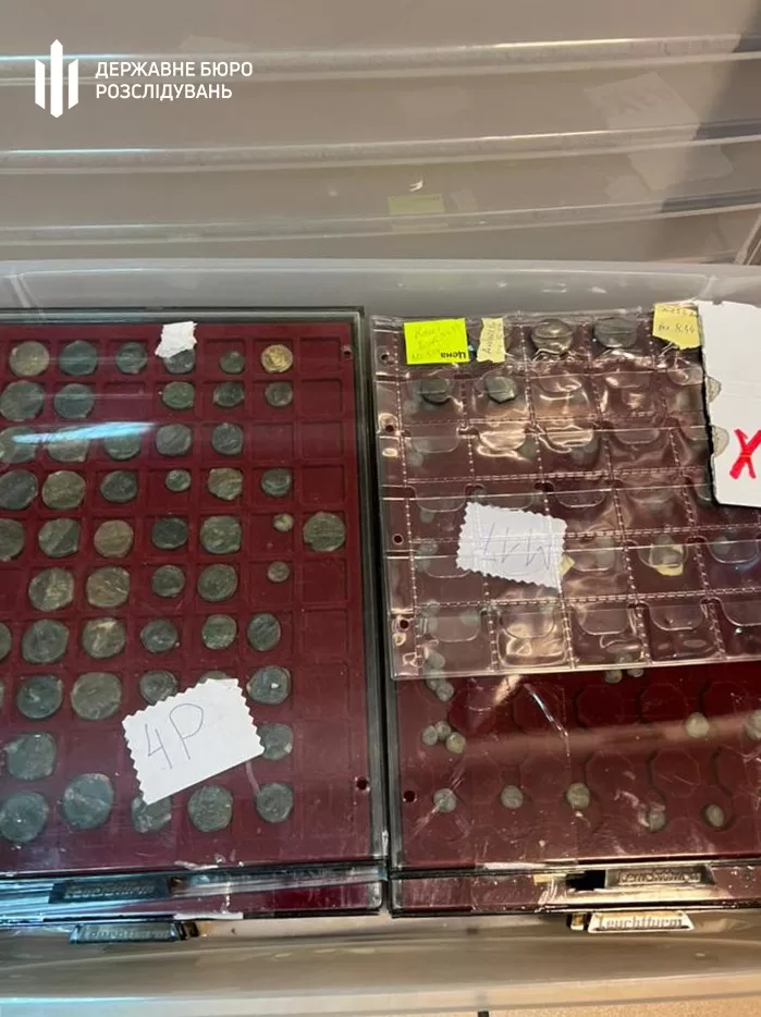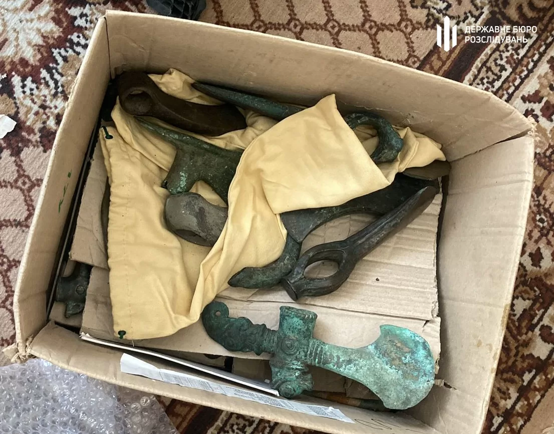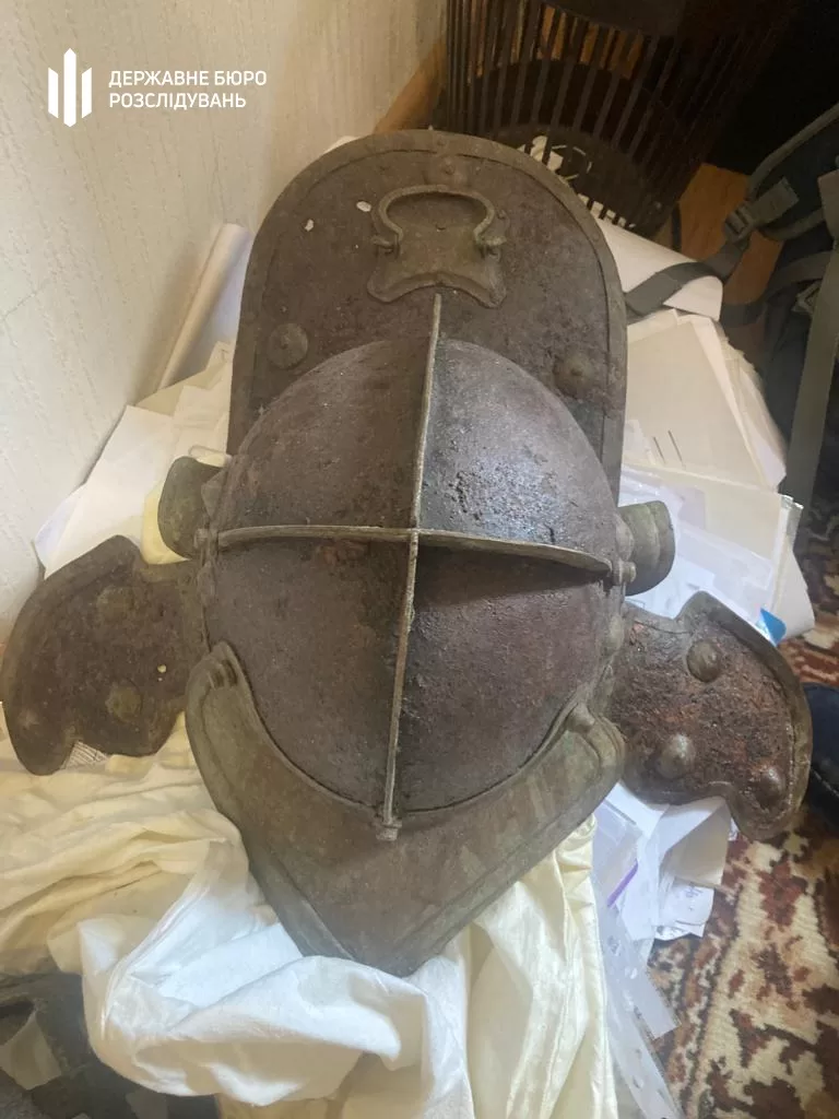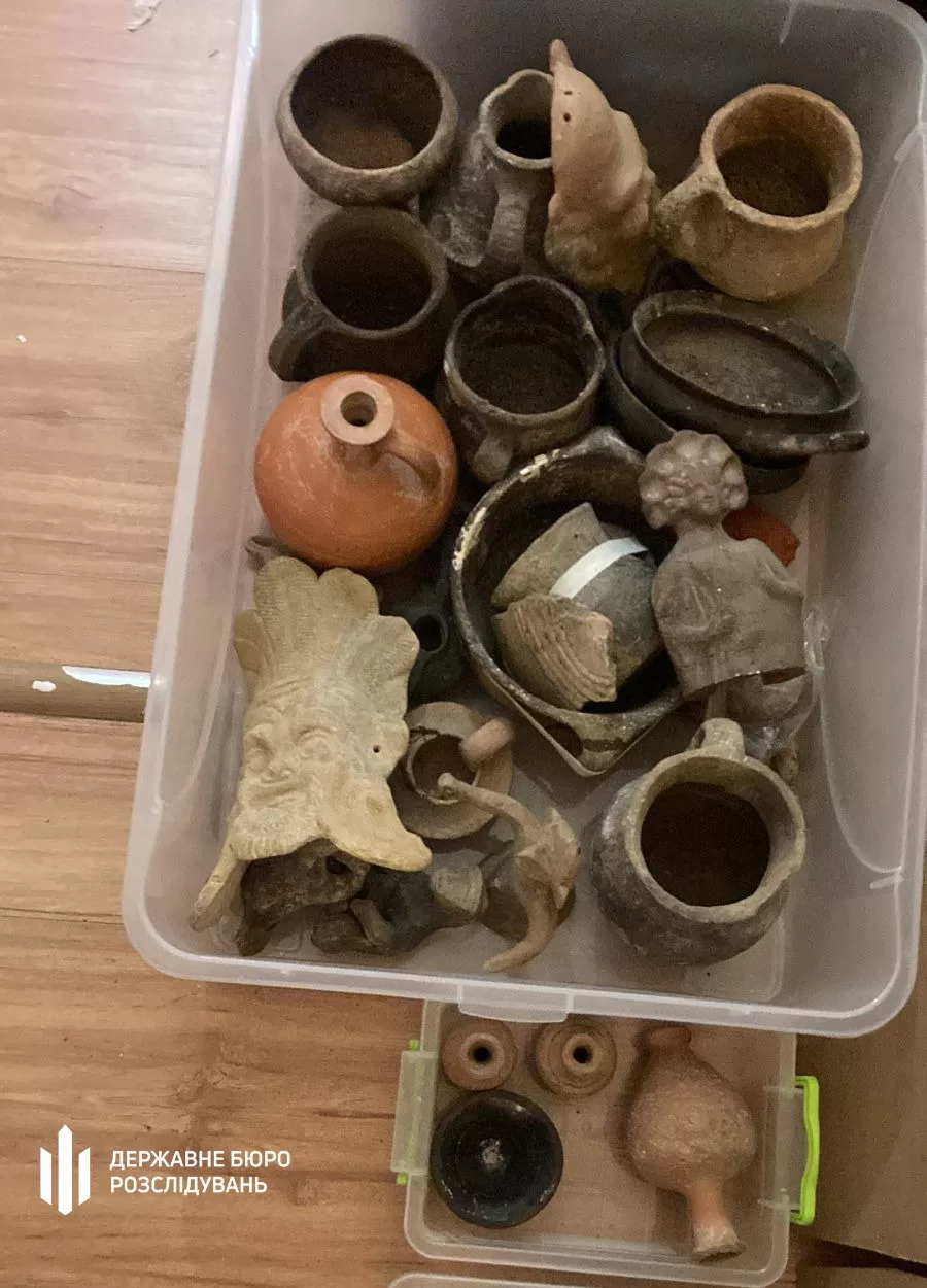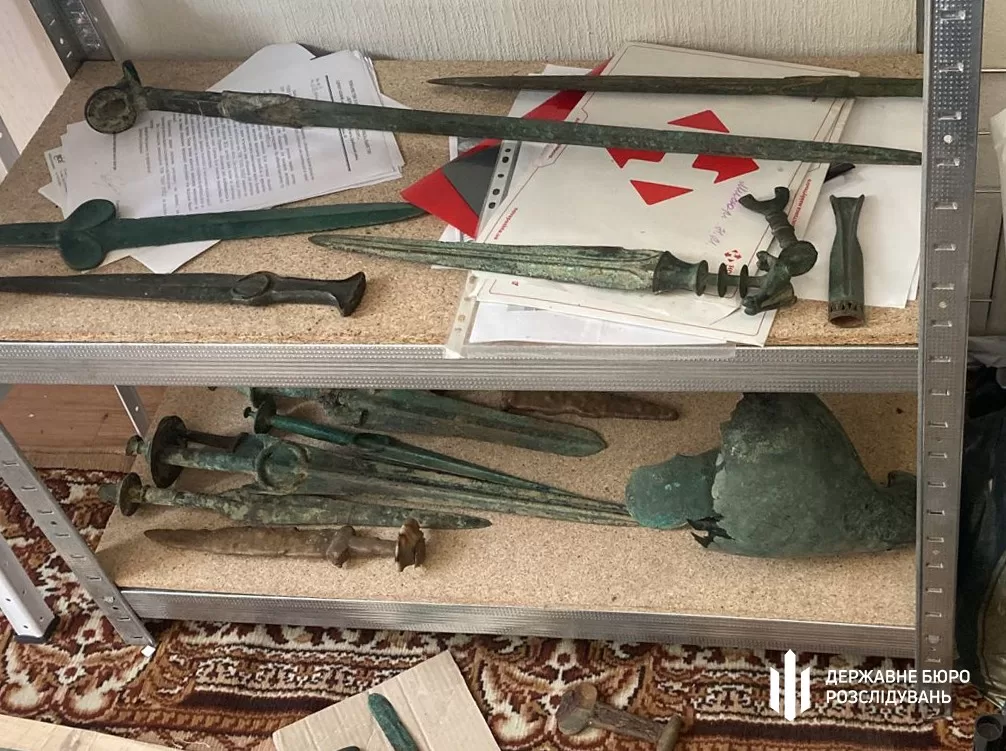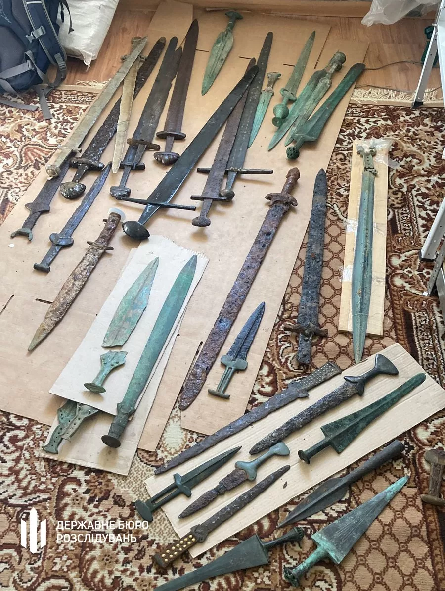 В частности, изъят меч гуннов, декорированный золотом и альмандинами. По стилистике он напоминает знаменитую гунскую диадему из Мелитопольского музея, которая была похищена российскими оккупантами. Также найдены доспехи 16–19 вв., среди которых шлемы польских гусаров, типа Морион, иранские шлемы, монеты периодов от античности до позднего средневековья. Нашли правоохранители и византийскую золотую декорированную эмалью иконку с изображением архангела Михаила 11–12 вв., античные и скифские древности, иконы, холодное оружие 14–19 вв., Первой и Второй мировых войн, мечи эпохи Великого переселения народов и тому подобное.