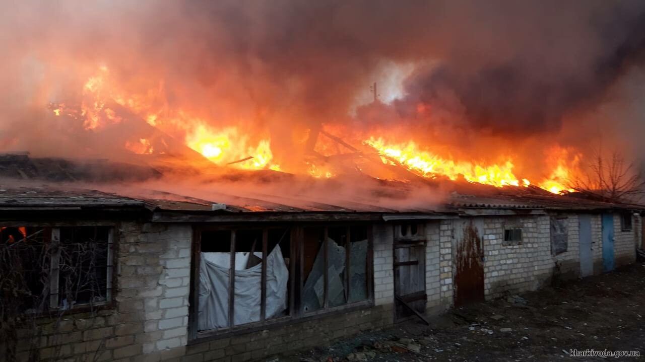 В Купянске в результате вражеских обстрелов повреждены хозяйственные постройки, произошли масштабные пожары.