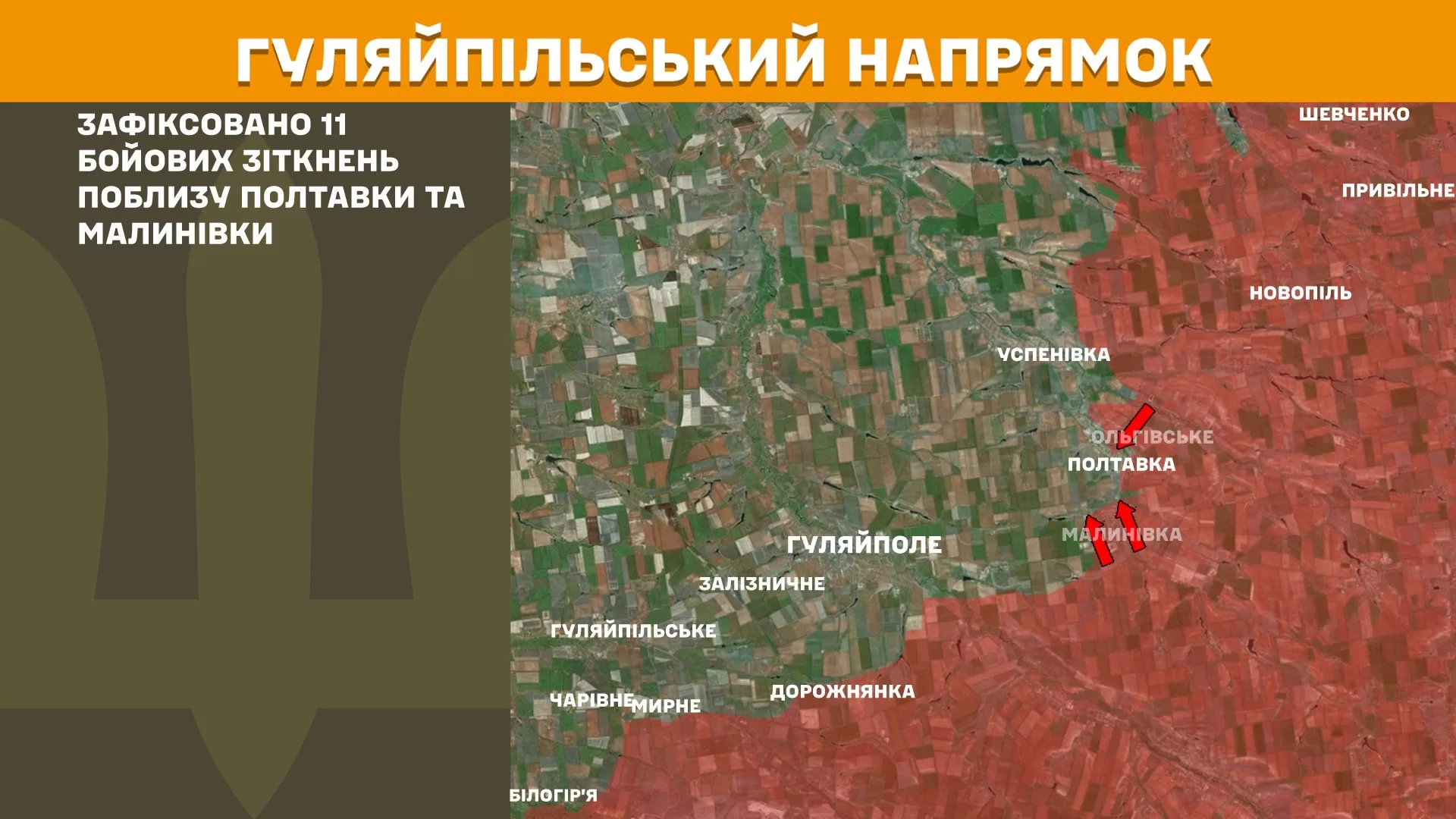 На Гуляйпольском направлении зафиксировано 11 боевых столкновений вблизи Полтавки и Малиновки.