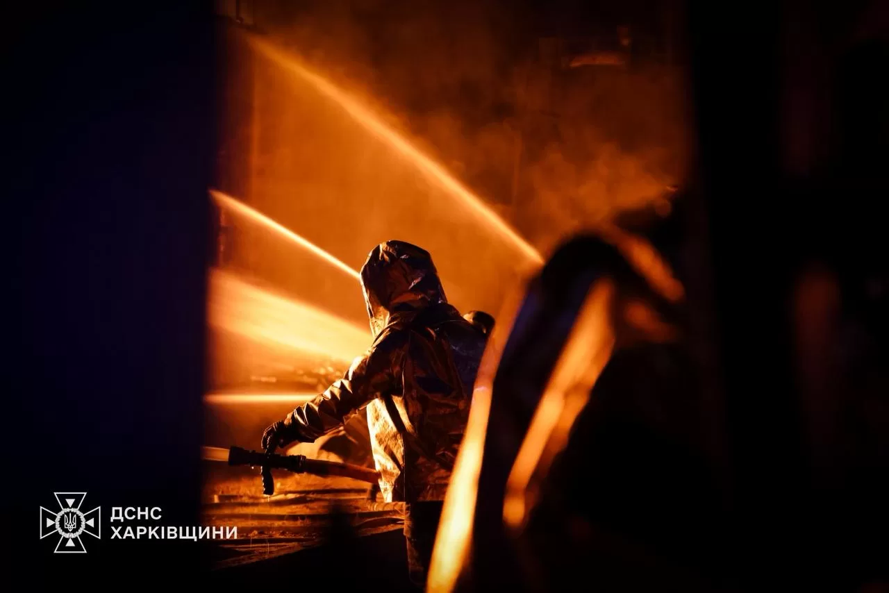 Спасатель Харьковщины на месте пожара после обстрела РФ / Фото: ГСЧС