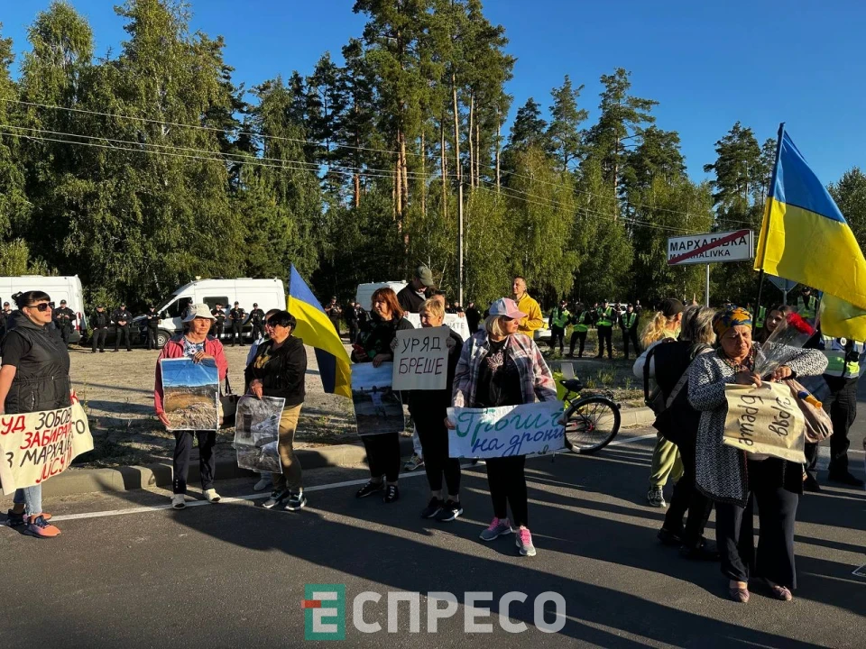 В селе Мархаловка Киевской области местные жители вышли на акцию протеста против открытия Национального военного мемориального кладбища.