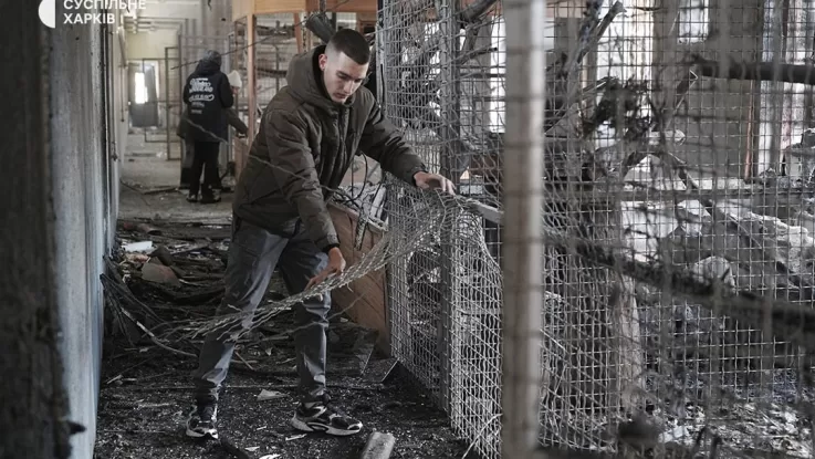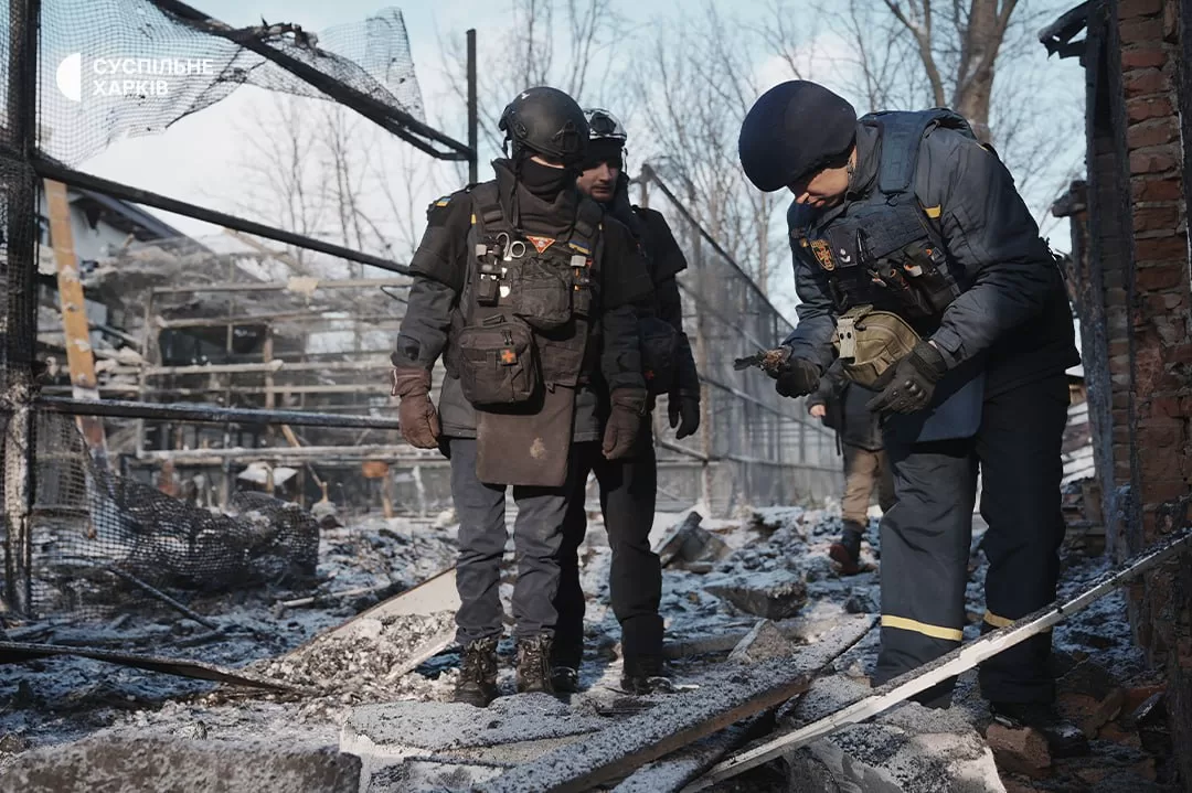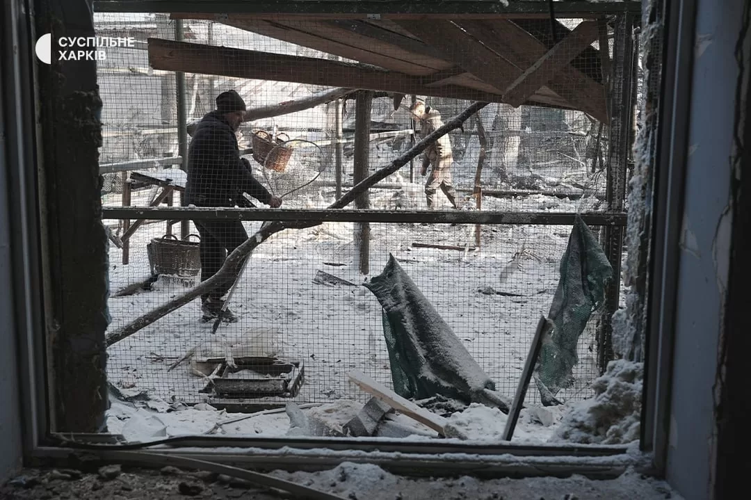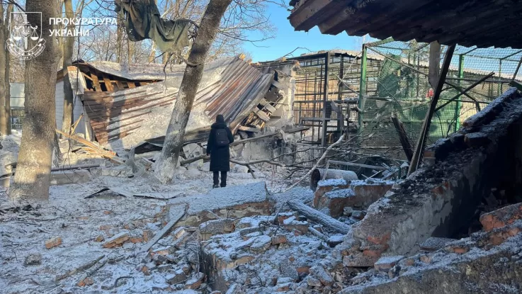 Харьковская областная прокуратура опубликовала фото последствий авиационного удара по Экопарку в пригороде Харькова. В результате атаки погибли птицы, повреждены здания, также ранения получила волонтёрка.
