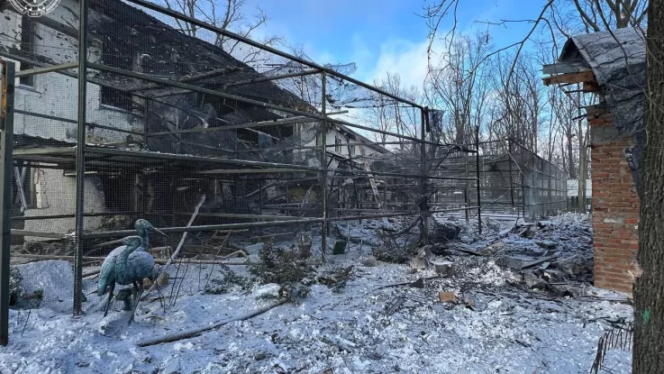 По его словам, разрушены три здания: зимнее помещение для птиц, здание хищных животных и ещё одно недавно построенное здание, в котором на момент удара никого не было. Тигров закрыли, сейчас ветеринары проводят их осмотр — состояние тигров оценивается как нормальное. По поводу состояния львов есть вопросы, однако угрозы их жизни, по словам руководителя, нет, животных также осматривают ветеринары.