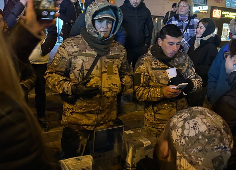 Вечером 16 ноября военный и активист Олег Симороз посетил точки сбора средств возле станции метро «Героев Днепра».