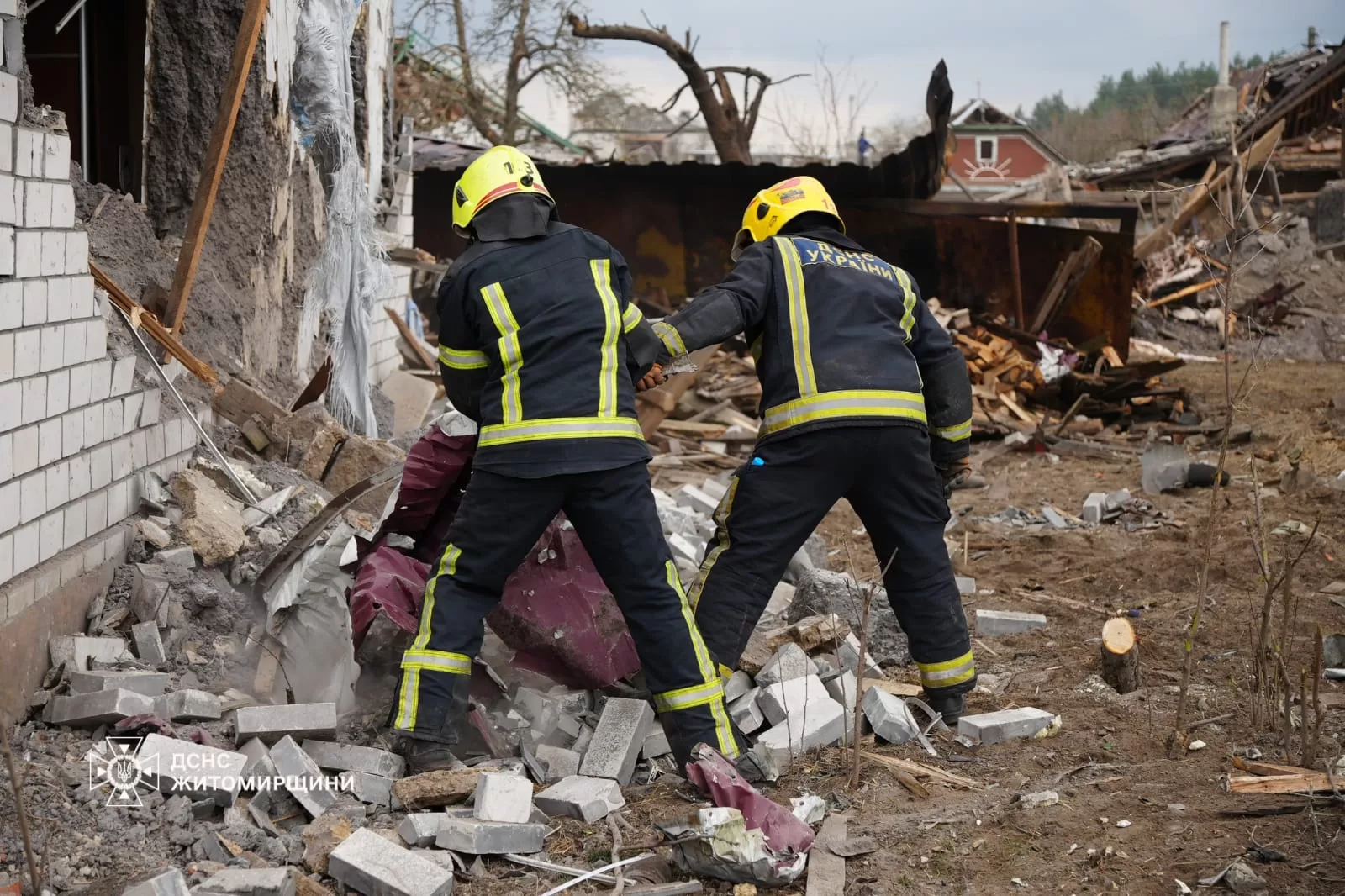 3 апреля в Житомирской области в результате российской атаки погиб один человек, ещё десять травмированы. Двух пострадавших спасатели деблокировали из-под завалов.