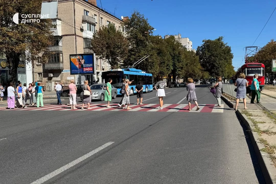 В Днепре, в Чечеловском районе, люди перекрыли улицу Рабочую из-за отсутствия электроэнергии после российской атаки 30 августа. Жители жалуются, что свет дают лишь на несколько часов, поэтому они вышли на протест, чтобы привлечь внимание к проблеме.