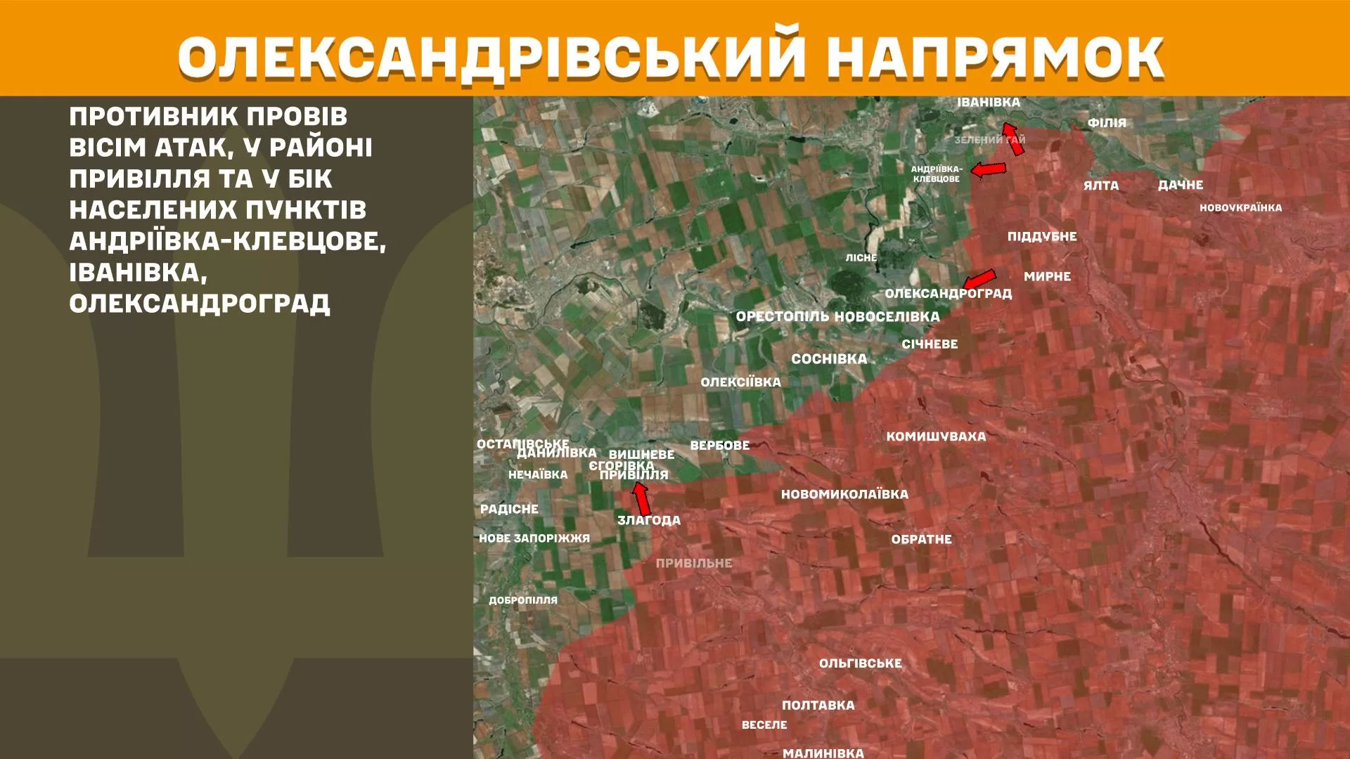 На Александровском направлении противник в течение прошедшего дня провел восемь атак, в районе Приволья и в сторону населенных пунктов Андреевка-Клевцово, Ивановка, Александроград.