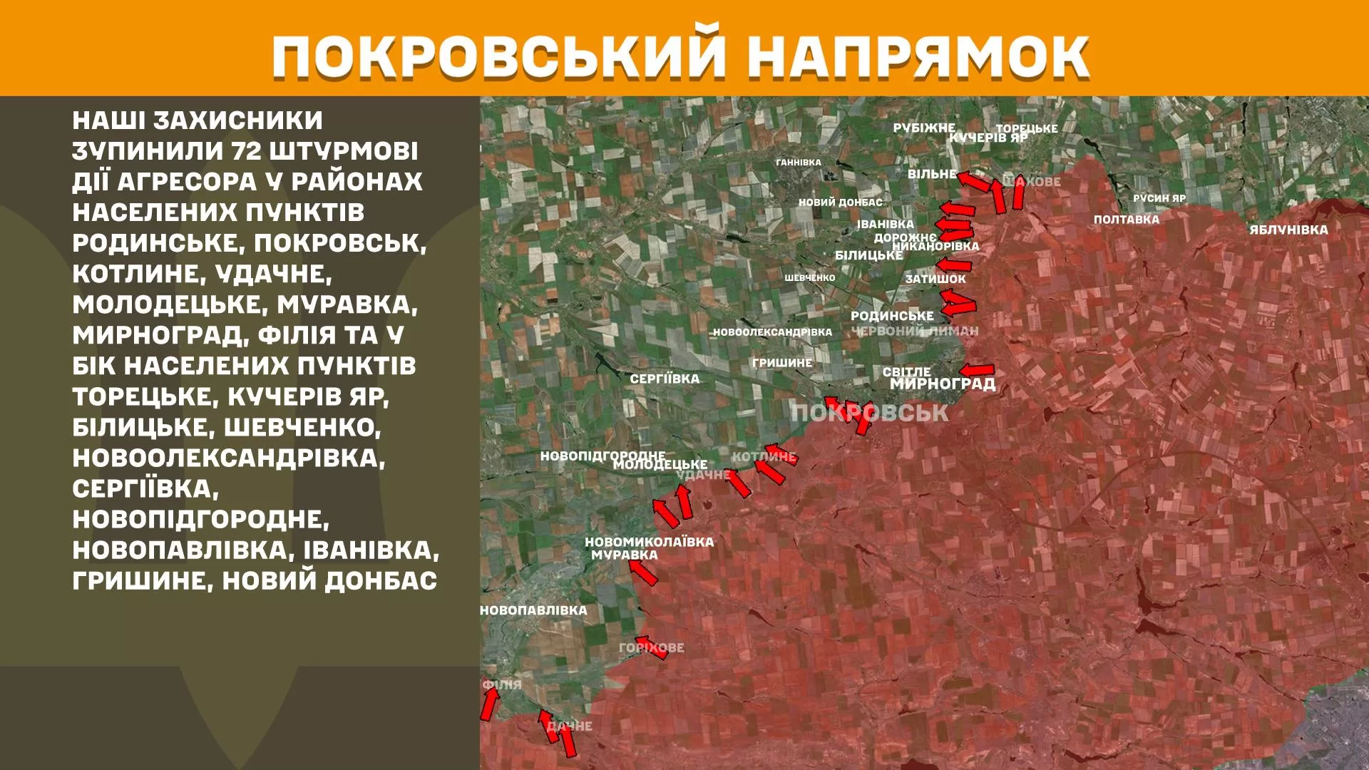 На Покровском направлении украинские защитники остановили 72 штурмовые действия агрессора в районах населенных пунктов Родинское, Покровск, Котлино,