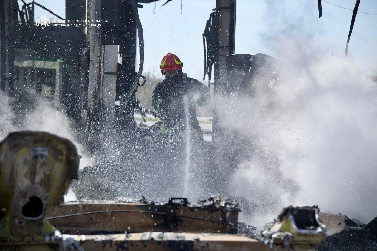 Кроме того, спасатели ликвидировали пожар на автозаправочной станции, возникший из-за утренней атаки. Там уничтожены восемь грузовиков и четыре легковых автомобиля.