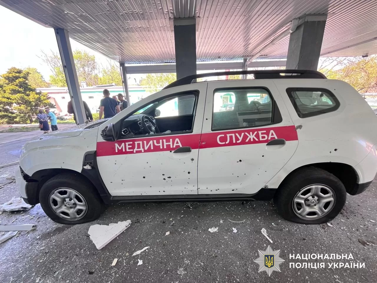 «У раненых в возрасте от 19 до 64 лет взрывные травмы и осколочные ранения различных частей тела. Получили повреждения одно из отделений больницы, медицинский и гражданский автомобили. Из-за дальнейших дроновых атак получил повреждения еще один автомобиль», — говорится в сообщении