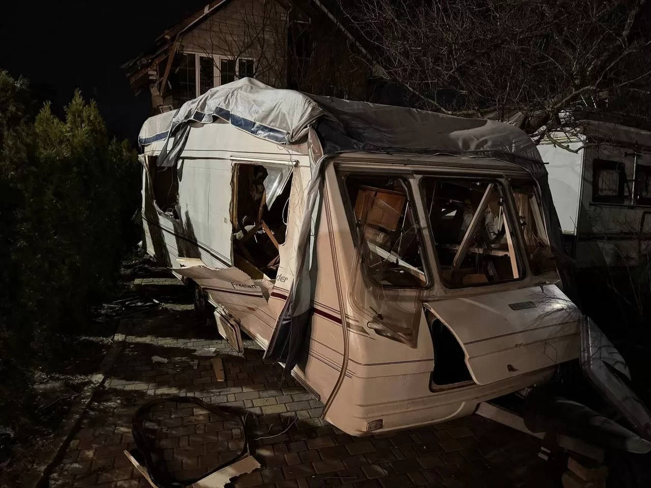 Из-за ударов дронов в одном из гаражей загорелась легковушка. Огонь также охватил инфраструктурные объекты. Также повреждены около 10 частных домов и повылетали окна в детсаду и школе.