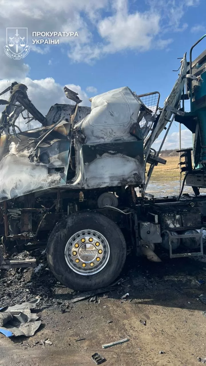 После попадания российского дрона кабина грузовика загорелась, погиб водитель.