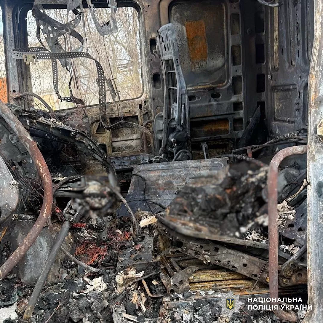 Как уточнили в полиции, оккупанты ударили беспилотником по грузовым авто на территории одного из местных предприятий. В результате атаки вспыхнул пожар, одна машина выгорела дотла.