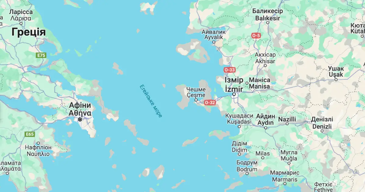 Судя по видеозаписи Веснина, расположенные рядом моря и заливы сохранили свои названия. При этом Эгейское море можно найти по встроенному поиску.