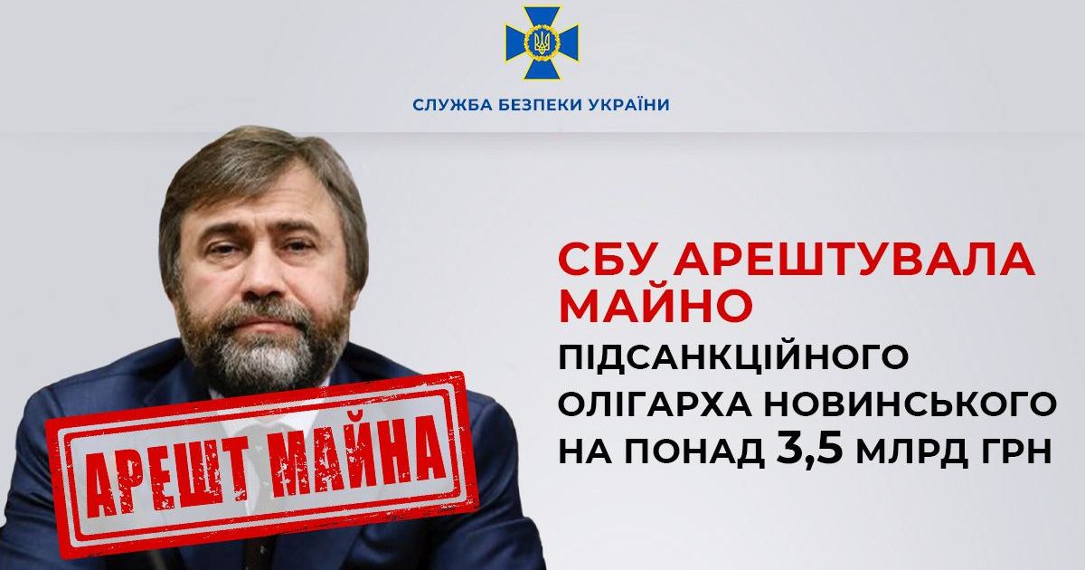 По материалам Службы безопасности арестовано имущество пророссийского олигарха Вадима Новинского, причастного к пособничеству стране-агрессору.