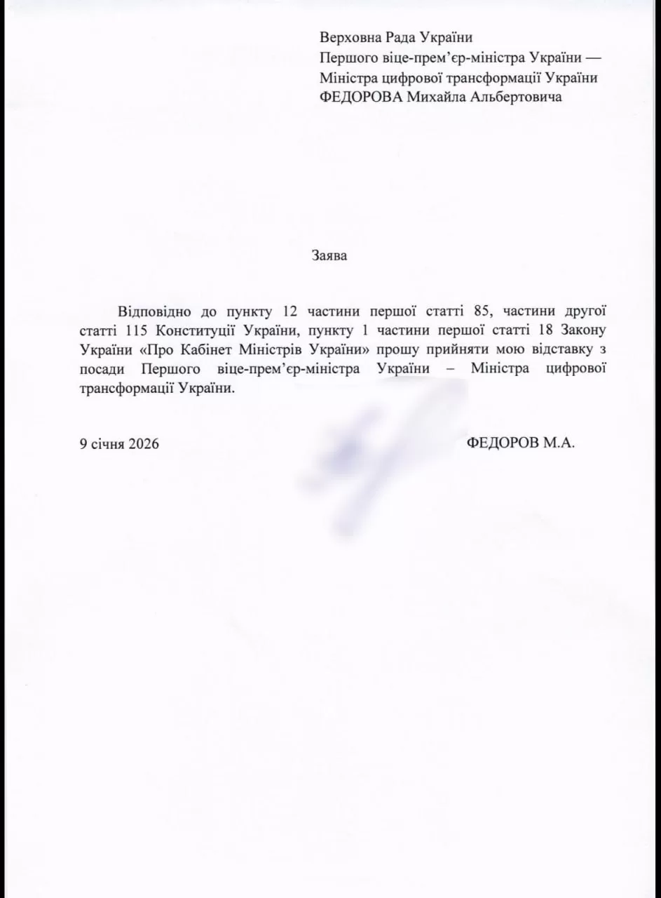 В Верховную Раду поступили заявления об отставке министра цифровой трансформации Михаила Федорова и министра обороны Дениса Шмыгаля. Их рассмотрят в ближайшее время в соответствии с установленной процедурой.