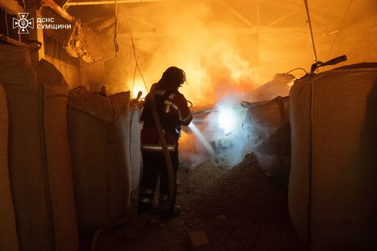 Как рассказали в ГСЧС, в результате дроновой атаки в Сумской и Бездрицкой громадах возникли масштабные пожары. Спасатели одновременно работали на трех разных локациях. Горели нежилые помещения и дома мирных граждан.