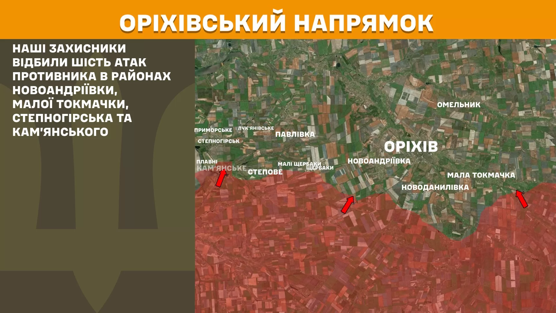 На Ореховском направлении украинские защитники отбили шесть атак противника в районах Новоандреевки, Малой Токмачки, Степногорска и Каменского.
