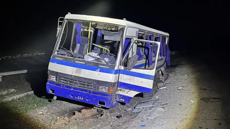 По данным ГСЧС, вражеская атака унесла жизни восьми человек, еще 27 человек получили ранения. Часть пострадавших находилась в автобусе, который оказался в эпицентре удара. Также были повреждены легковые автомобили.